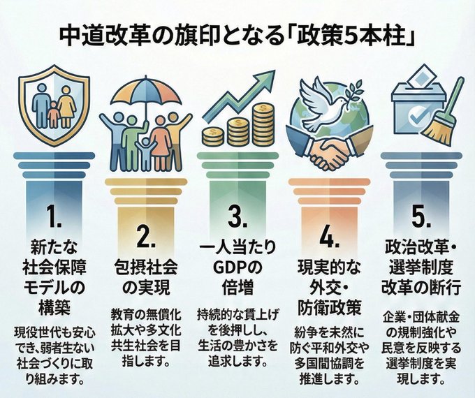 高市さんの不意打ち解散報道が流れる間もなく、公明-立憲の新党結成の報道!昨夜、朝日の報道にはちょつとびっくり。どうせ公明-立憲とは選挙協力くらいだろうというのが大方の見方だったのだが、蓋を開けたら新党www!さすがに退潮気味とはいえ、両党の新党結成は自民党には相当な痛手。特に当落すれすの自民議員には強烈。楽勝と思っていた高市さんも頭が痛くなってきただろうと推察。風次第では与野党逆転の可能性も出てきた。現状両党の浮動票は殆ど期待出来ないので、間違ってもマイナス効果は殆どないという背水の戦略。こんな奇策を考える軍師がいたとはwww。